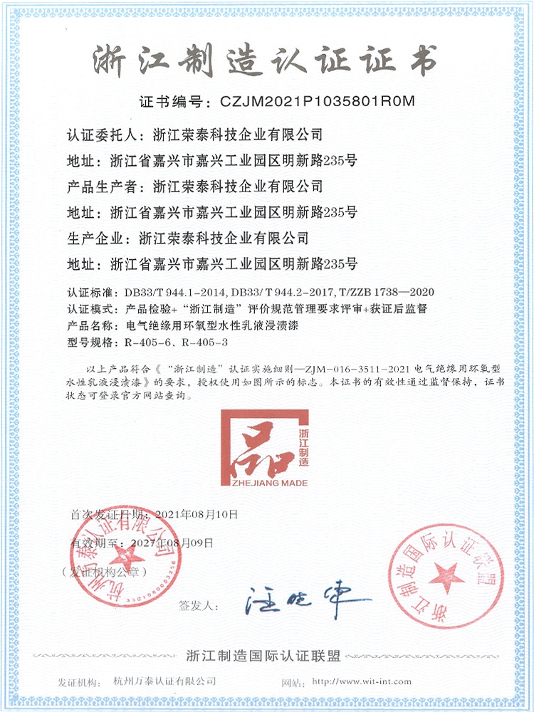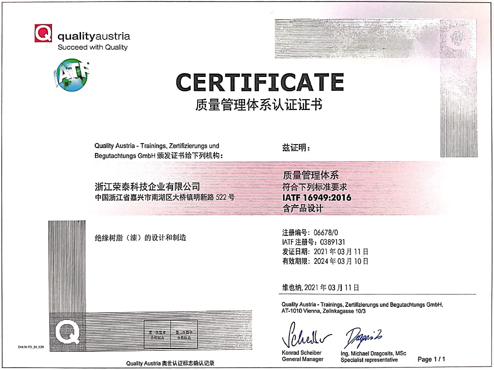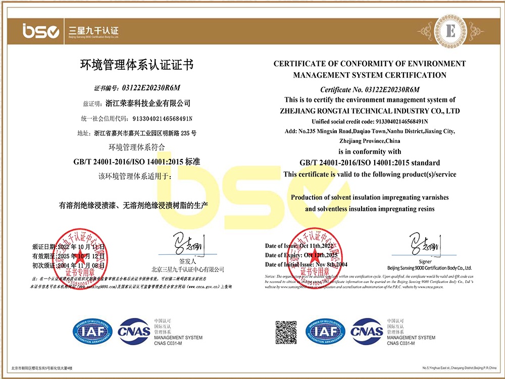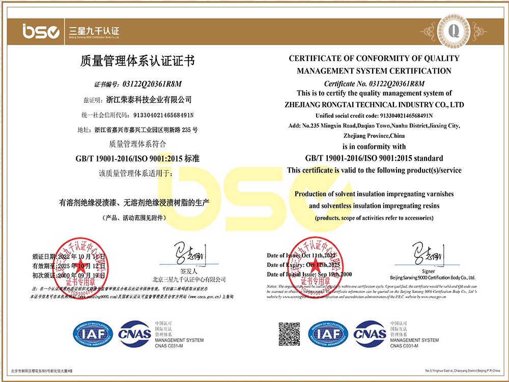 浙江榮泰科技企業有限公司是一家專業生產高性能絕緣材料的國家高新技術企業、國家“小巨人”企業,為國內絕緣漆生產制造領軍企業、全國絕緣材料行業協會的副理事長單位,生產規模、產品技術和創新能力處于同行業領先地位。